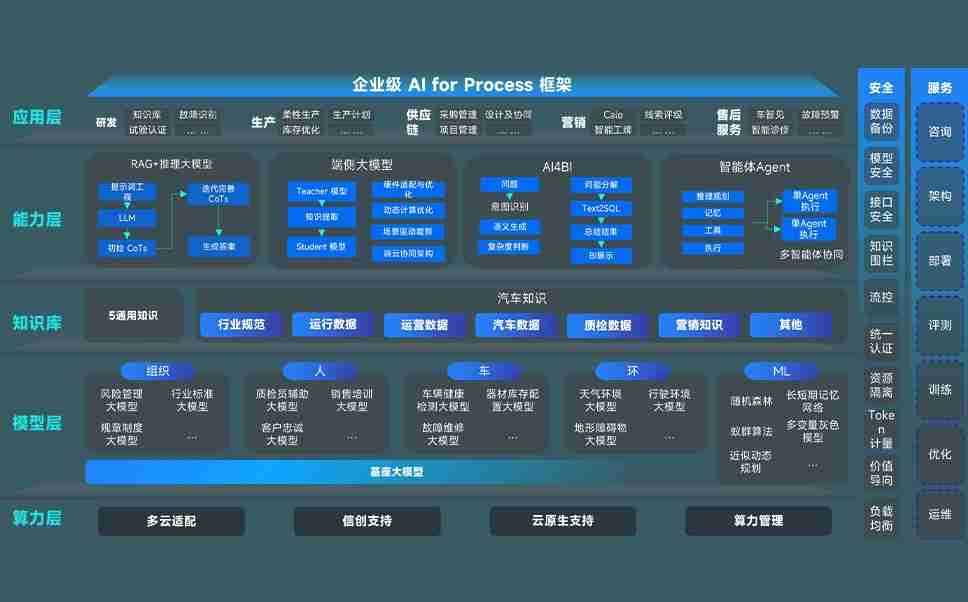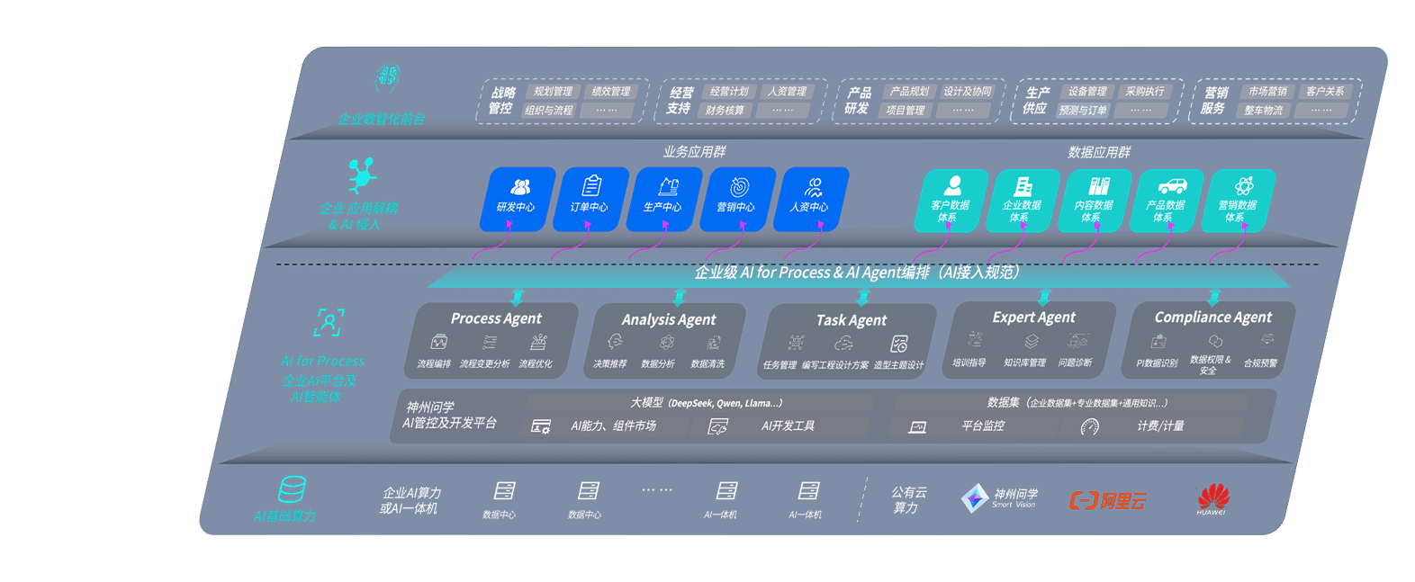 端到端的一站式AI工作空间深度融合了从企业战略规划到日常经营的全流程业务板块,,,,定向解决车企内部领域多、、、部门多、、链条长、、、场景碎片化等难题,,支持车企快速构建以AI为核心的生产力写作体系,,,实现任务执行与AI能力的无缝集成与交互