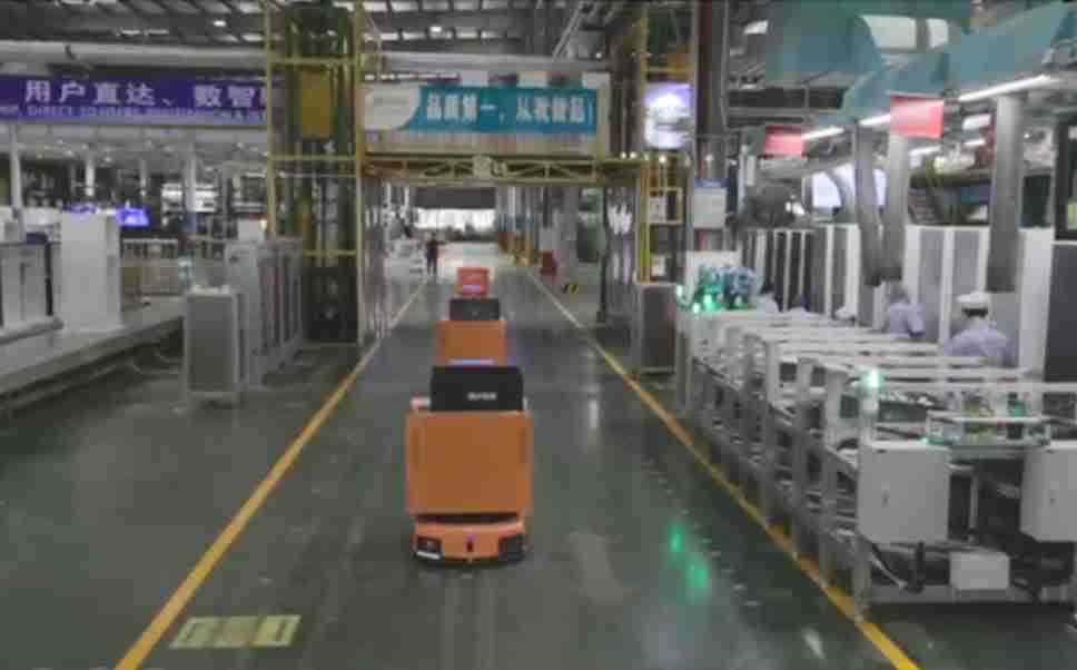 为车载冰箱物流配送打造的智能解决方案,,包含产中物流通过潜伏举升AMR搬运至线边,,,产后成品物流智能仓储,,,,流程包含产中物流智能齐套入库,,,线边安灯叫料AMR智能配送至线边,,,,成品入库、、、、出库,,通过无人堆高车机器人,,,,智能仓储管理替代人工作业管理,,,实现更高存储、、、、更高效率、、、、更具柔性化的解决方案。。